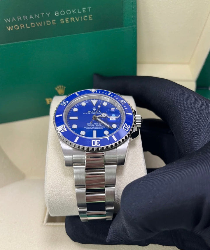 This Submariner boasts a vibrant blue dial and bezel, exuding luxury and sportiness. A professional
